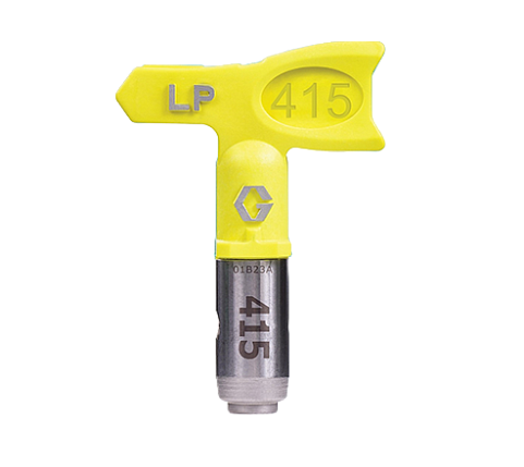 Сопло Reverse-A-Clean (RAC) 415 низкого давления (LP) RAC X SwitchTip позволяет выполнять работу с понижением давления до 50%. Это сопло высокой производительности и высокого давления формирует окрасочный отпечаток 20–25 см (8–10 дюймов) и имеет отверстие 0,015 дюйма. Для очистки при засорении нужно просто повернуть наконечник SwitchTip в обратную сторону.